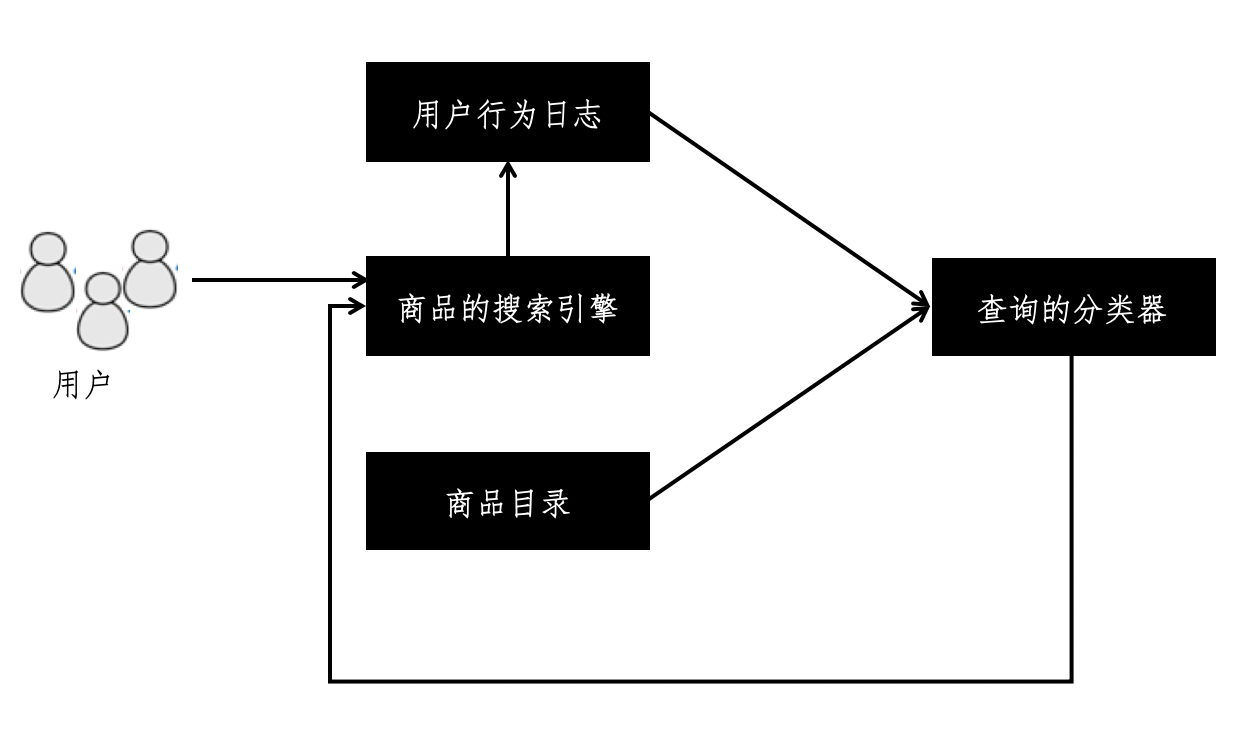 为了识别用户对哪类商品更感兴趣,我们可以对用户输入的查询进行分类。用于构建分类器的数据,可以是运营人员发布的商品目录信息,也可以是用户使用之后的行为日志。我们可以根据搜索系统运行的情况,赋予它们不同的权重。
