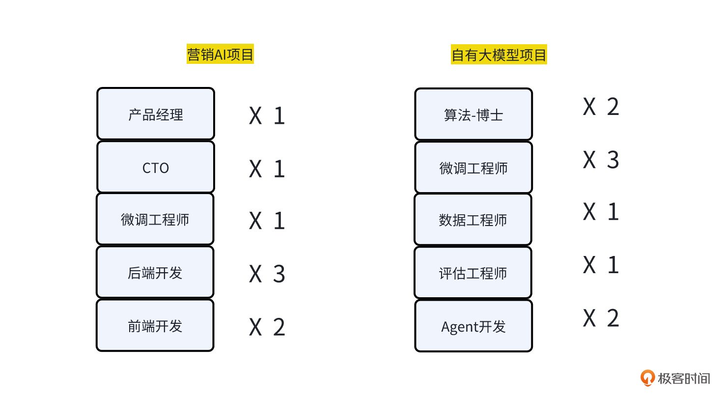 很多人都有这样的一个疑问,为什么大模型创业项目都需要博士呢?有10-20年开发经验工程师就做不了吗?为了回答这个问题,我先说说之前课程里两个项目团队的构成情况。