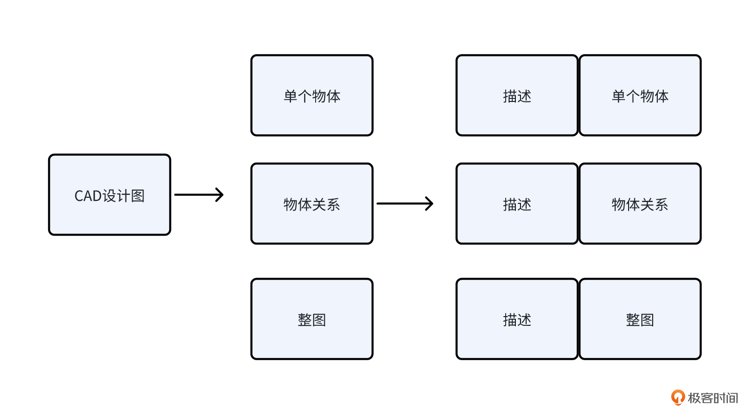 跟HTML这种代码类的数据不一样,代码类数据在互联网上非常容易获取,CAD这种结构化的数据则很难获取,也没有公开的资源。因此,在CAD设计AI大模型里,需要人工对每个CAD图拆解标注。