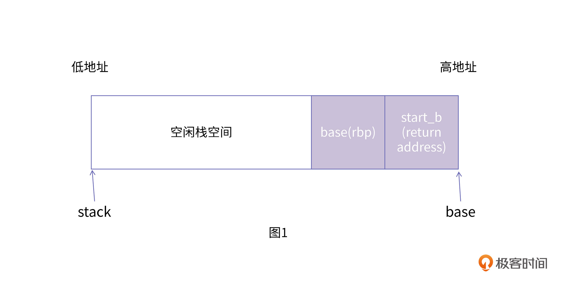 而显然,如图1所示,我们刚才精心准备的base地址正好就是为了”pop rbp”准备的,而start_b则是为了retq准备的。执行这次retq,CPU就会跳转到start_b函数中去运行了。
