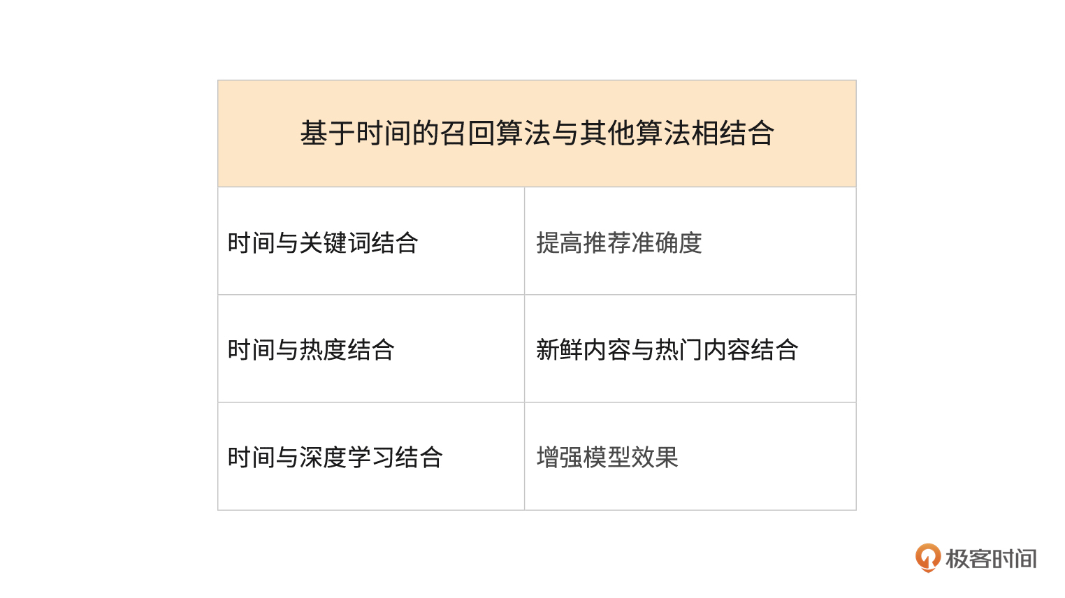 - 基于时间的召回算法很难考虑到用户行为与时间之间的非线性关系,精度偏低,需要与其他算法相结合,提高性能。