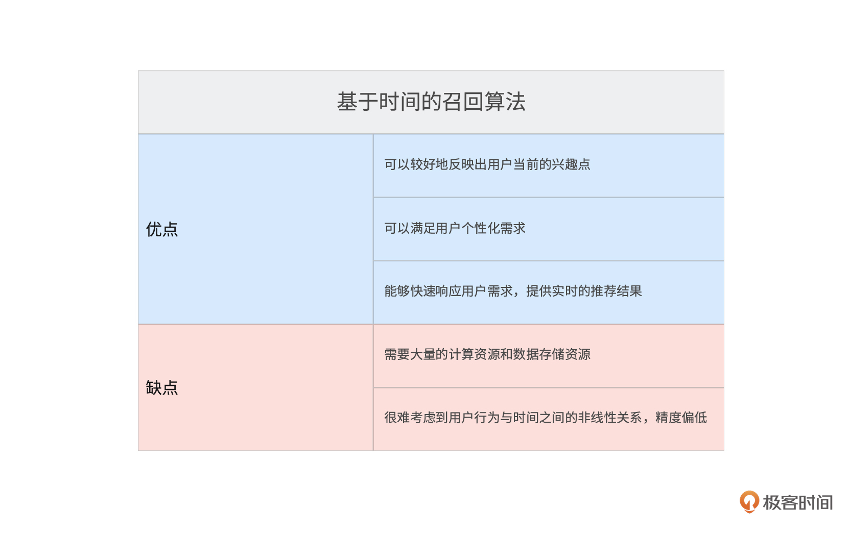同时,基于时间的召回算法也有下面两个主要的缺点。