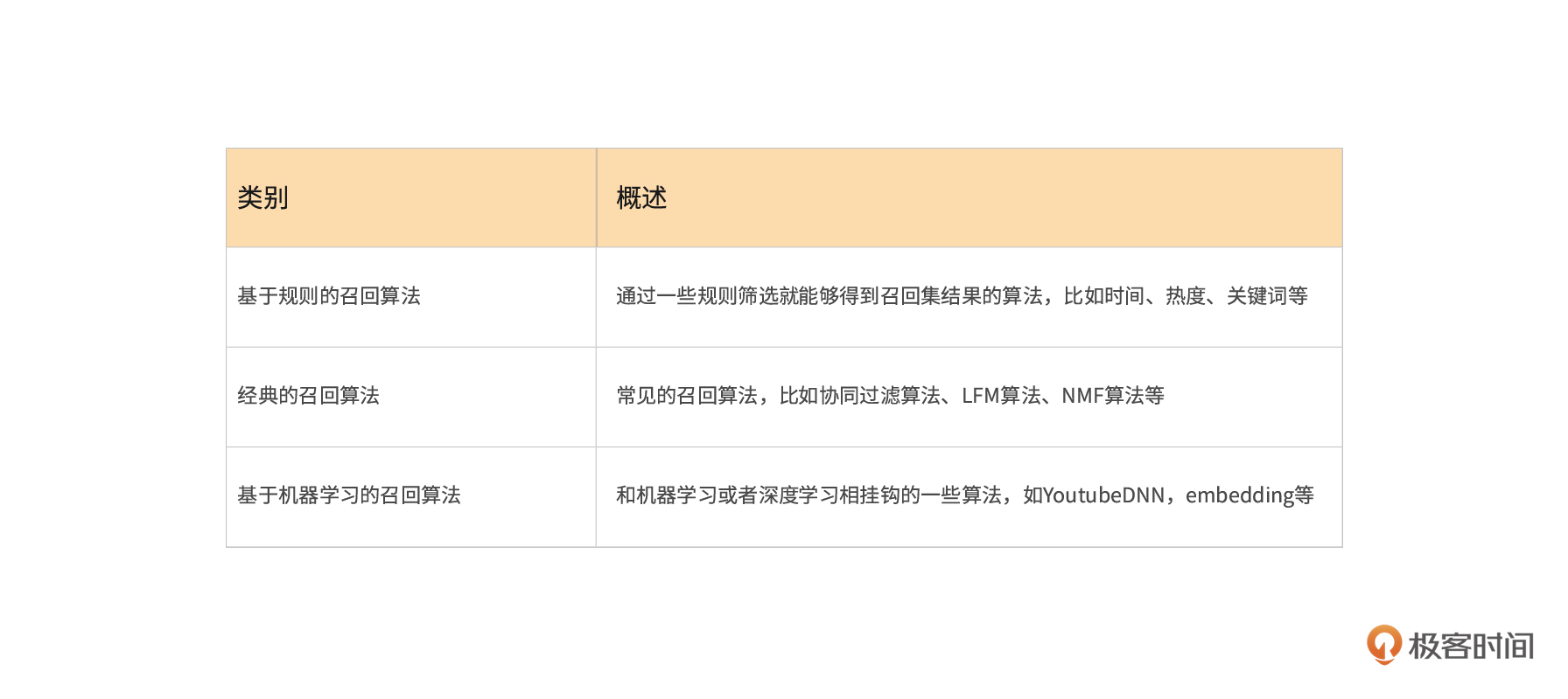 - 召回算法有很多分类,常见的分类是基于规则的召回、经典召回和基于机器学习的召回。