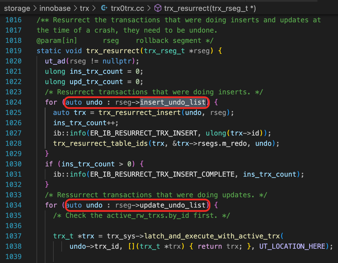 - 扫描每一个Undo表空间中的每一个回滚段,调用trx_resurrect函数,读取回滚段中所有的Undo段,把未完成的事务识别出来。trx_resurrect函数中最终会调用trx_sys_rw_trx_add,把事务加到trx_sys->shars中。