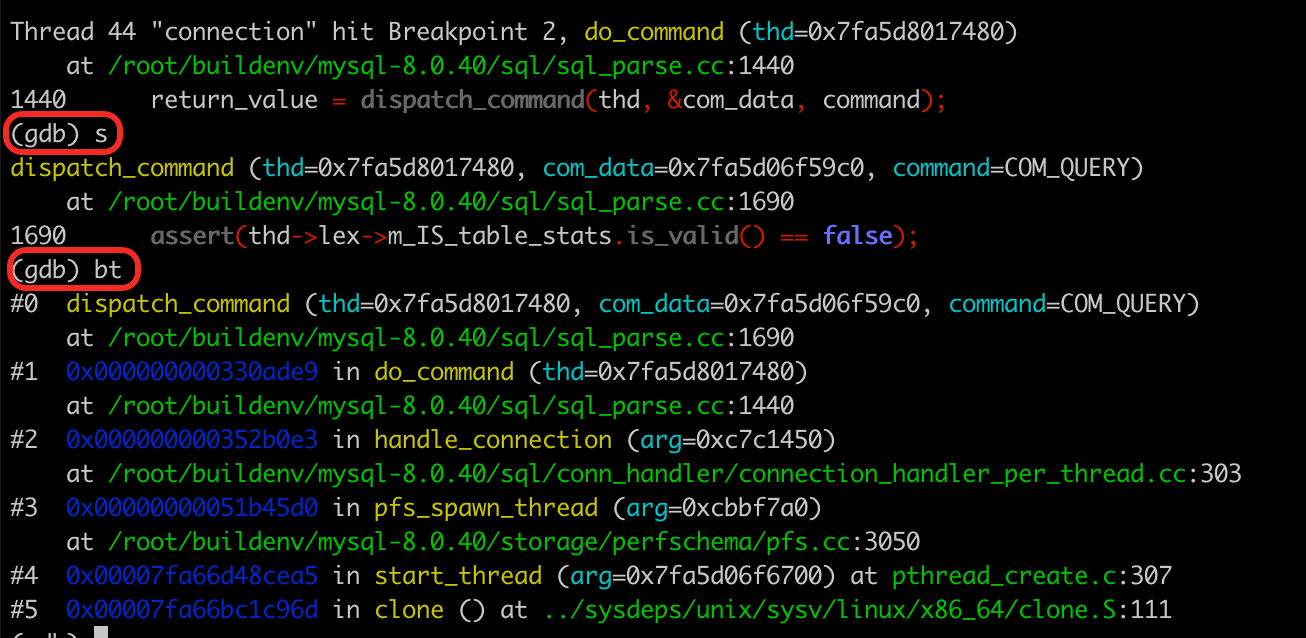1 | (gdb) break /root/buildenv/mysql-8.0.40/sql/sql_parse.cc:1440 |