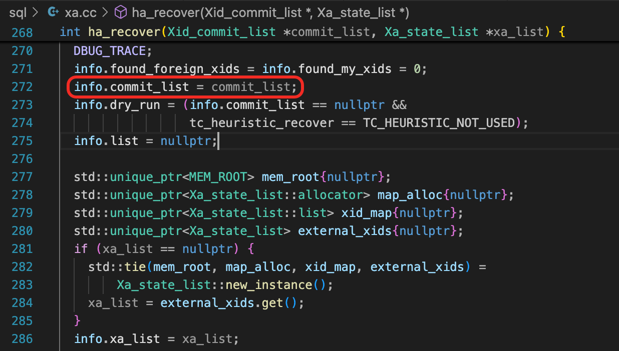接下来我们要分析commit_list。commit_list作为参数传给ha_recover函数。