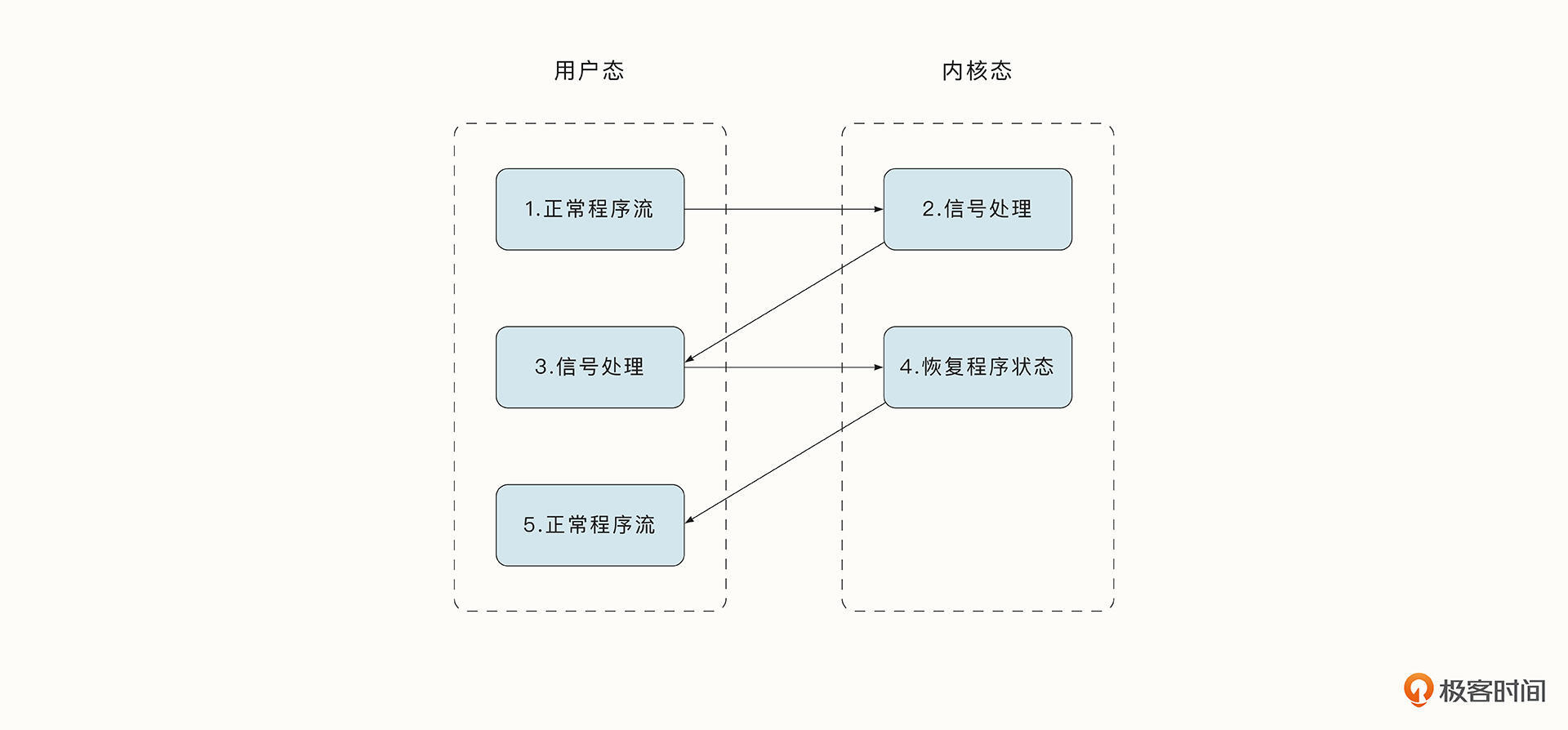 为了解决这一问题,Go 1.14 之后引入了信号强制抢占的机制。这需要借助下图中的类UNIX 操作系统信号处理机制。