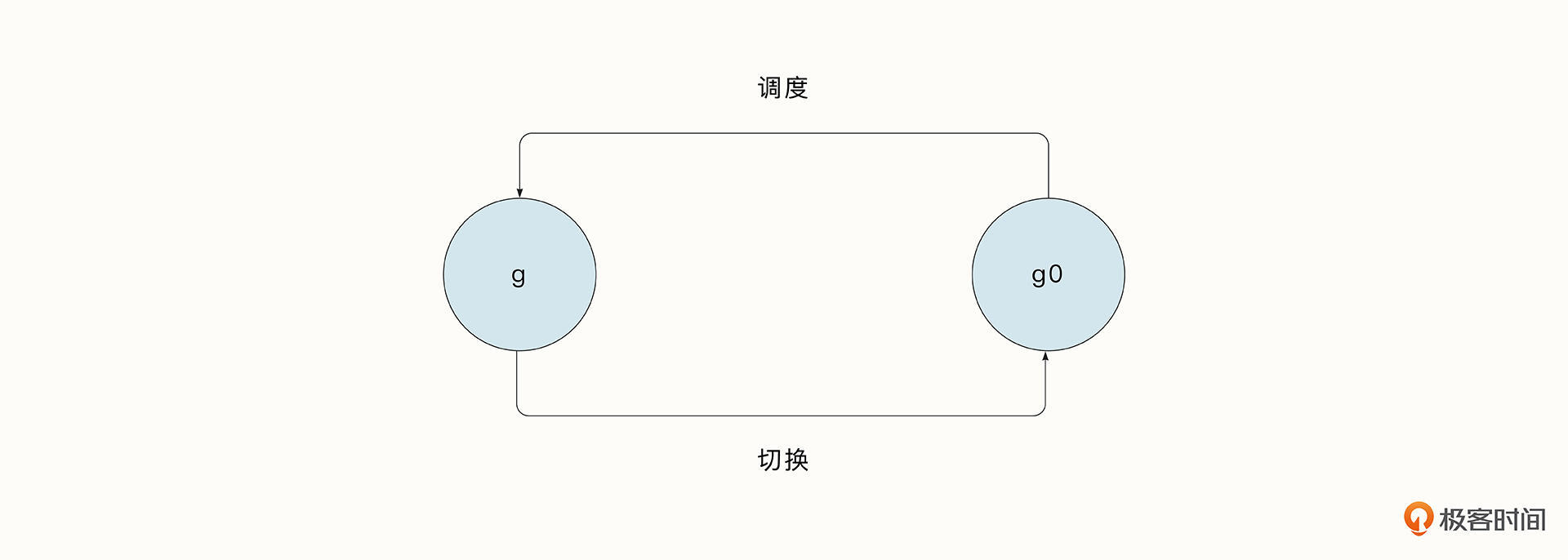 协程经历从g→g0→g 的过程之后,就完成了一次调度循环。和线程类似,协程切换的过程叫作协程的上下文切换。