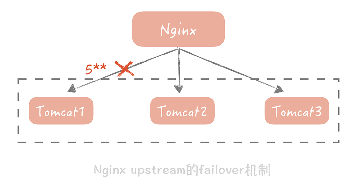 举个例子,Nginx可以配置当某一个Tomcat出现大于500的请求的时候,重试请求另一个Tomcat节点,就像下面这样: