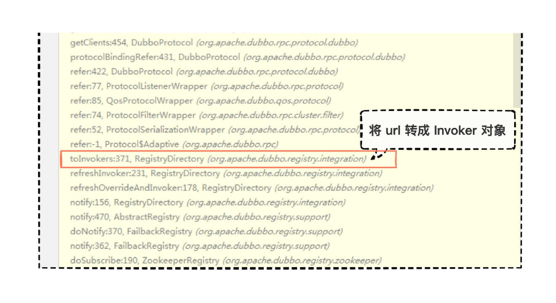 我们得出了一个非常重要的结论,从 RegistryProtocol 的 doRefer 一路跟踪,最终又回到了 RegistryProtocol 的 doCreateInvoker 方法,而且从方法名也能看出是创建 invoker 对象的核心逻辑,因此远程引用的核心逻辑就落到了 doCreateInvoker 方法中。