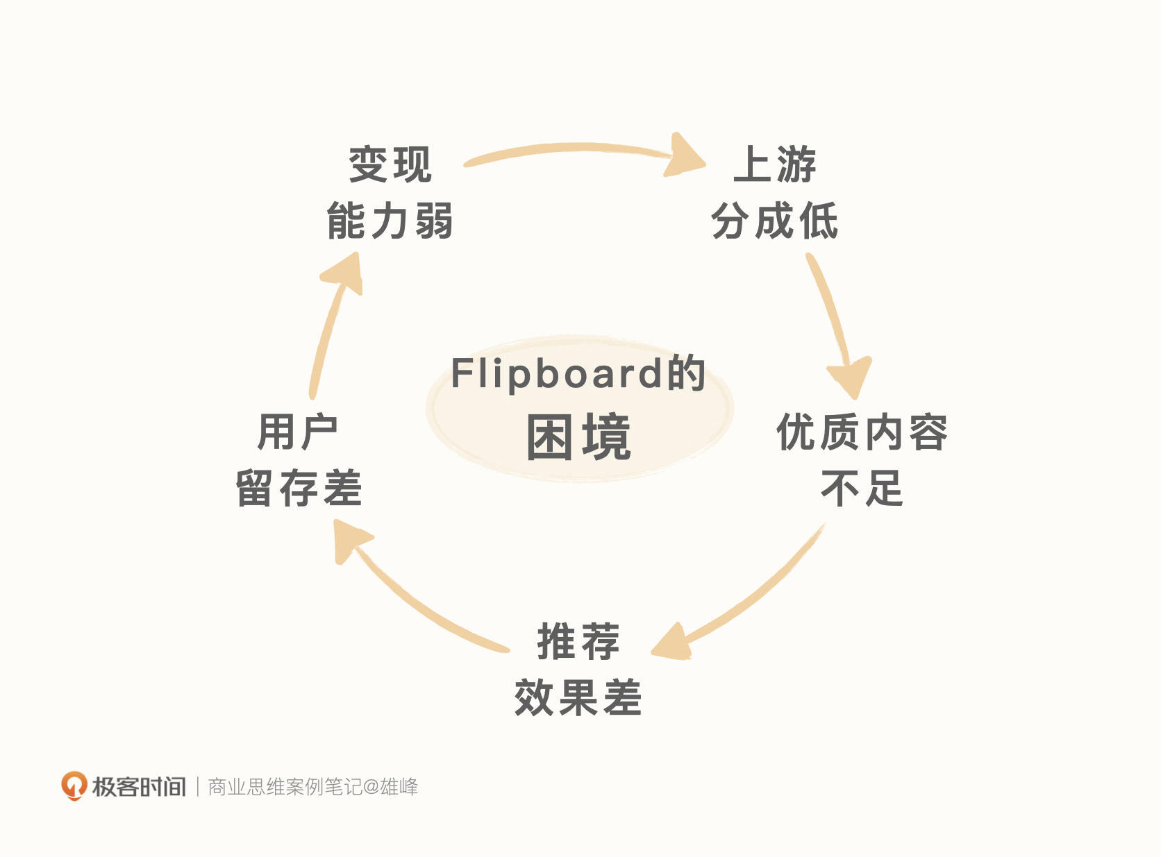 这里我们可以从产品定位再往深看一步,看看产品定位背后的产品机制。我先说结论,核心在于Filpboard的内容产品机制导致其选择了一个用户规模小众的市场,并且无法让用户为其付费,导致无法构建一个正向的内容循环机制。