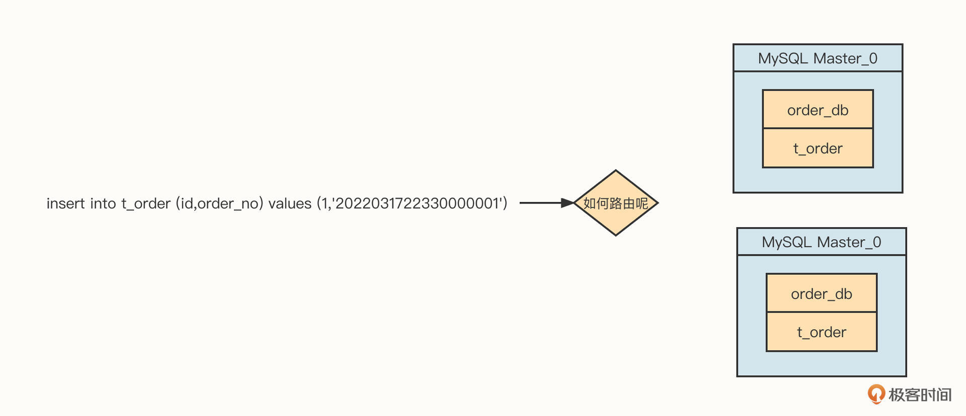 - 一个分库字段和分库算法,即在进行数据查询、数据写入时,根据分库字段的值算出要路由到哪个数据库实例上;