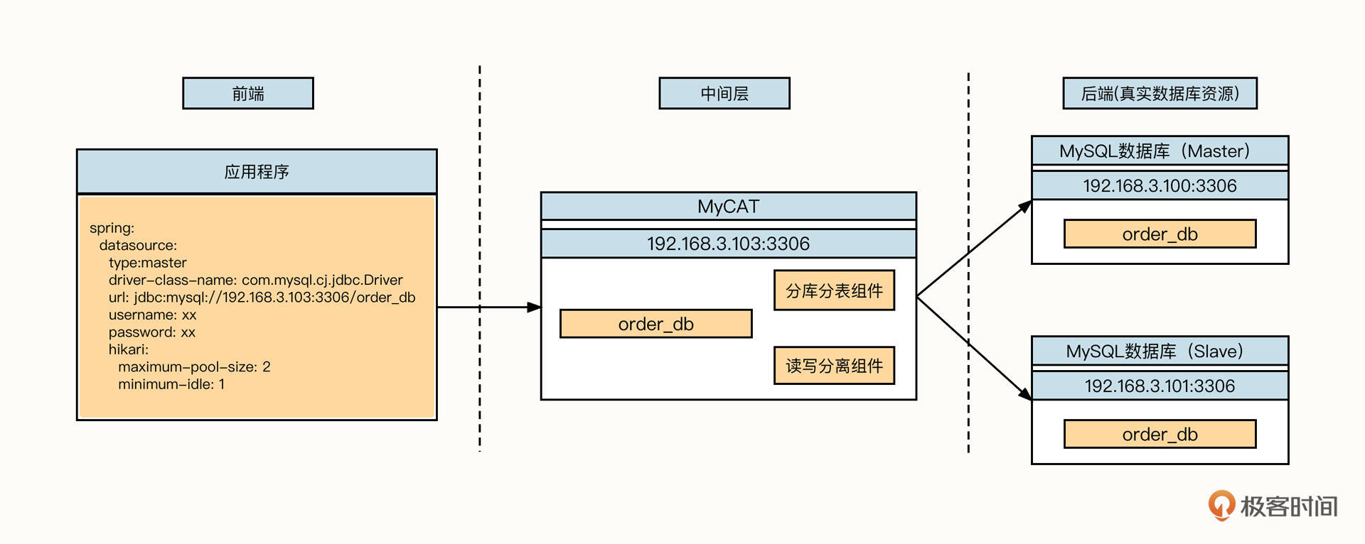 这三部分我们会在后面的模块中重点展开,所以这一模块不做深入讲解。接下来,为了让你对主流中间件有一个更全面的认知,我会分两节课对另外的几类中间件(数据库、缓存、搜索、日志等)进行简要阐述,以补全你的中间件知识图谱,帮助你更加有底气、有效率地进行决策。这节课,我们先来看看数据库中间件。