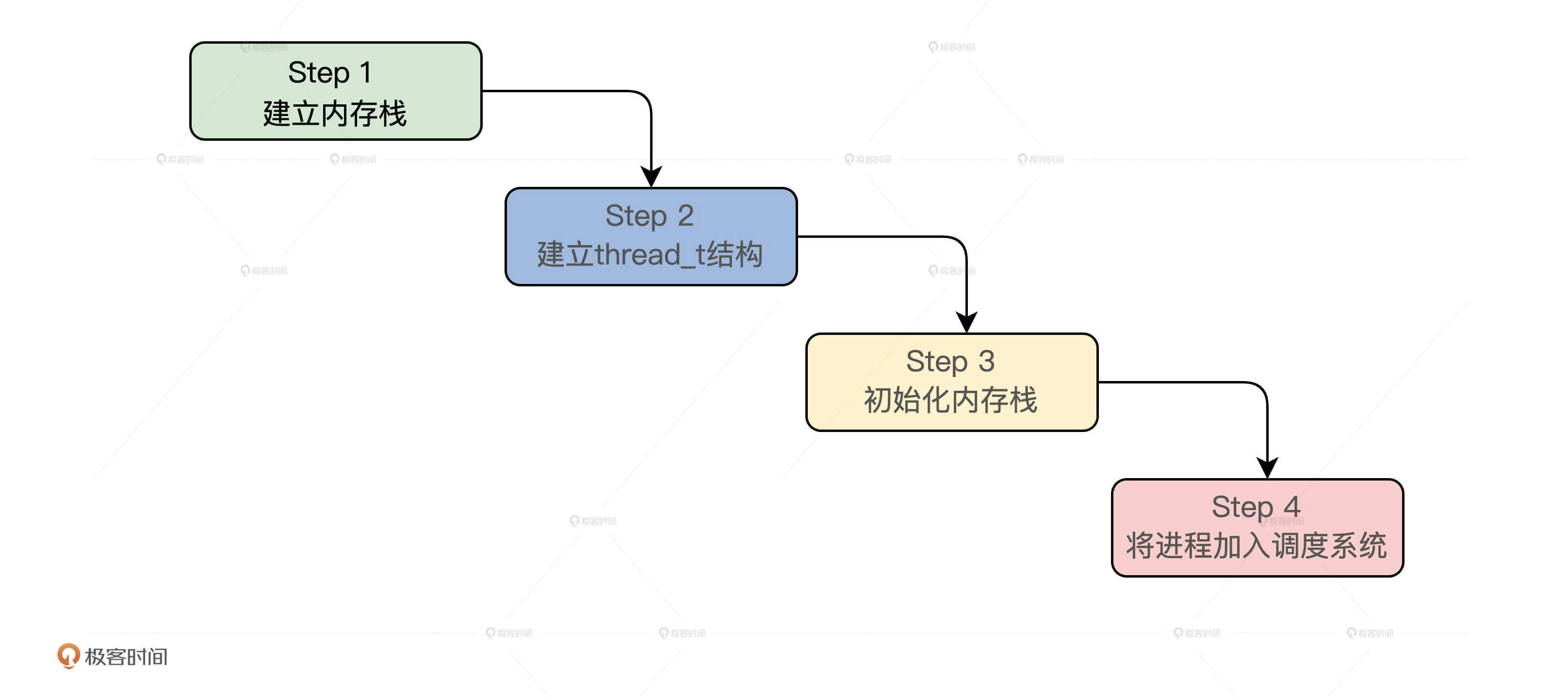 之前我们已经设计好了进程相关的数据结构,现在我们要讨论如何建立一个新的进程了。建立进程非常简单,就是在内存中建立起对应的数据结构的实例变量。