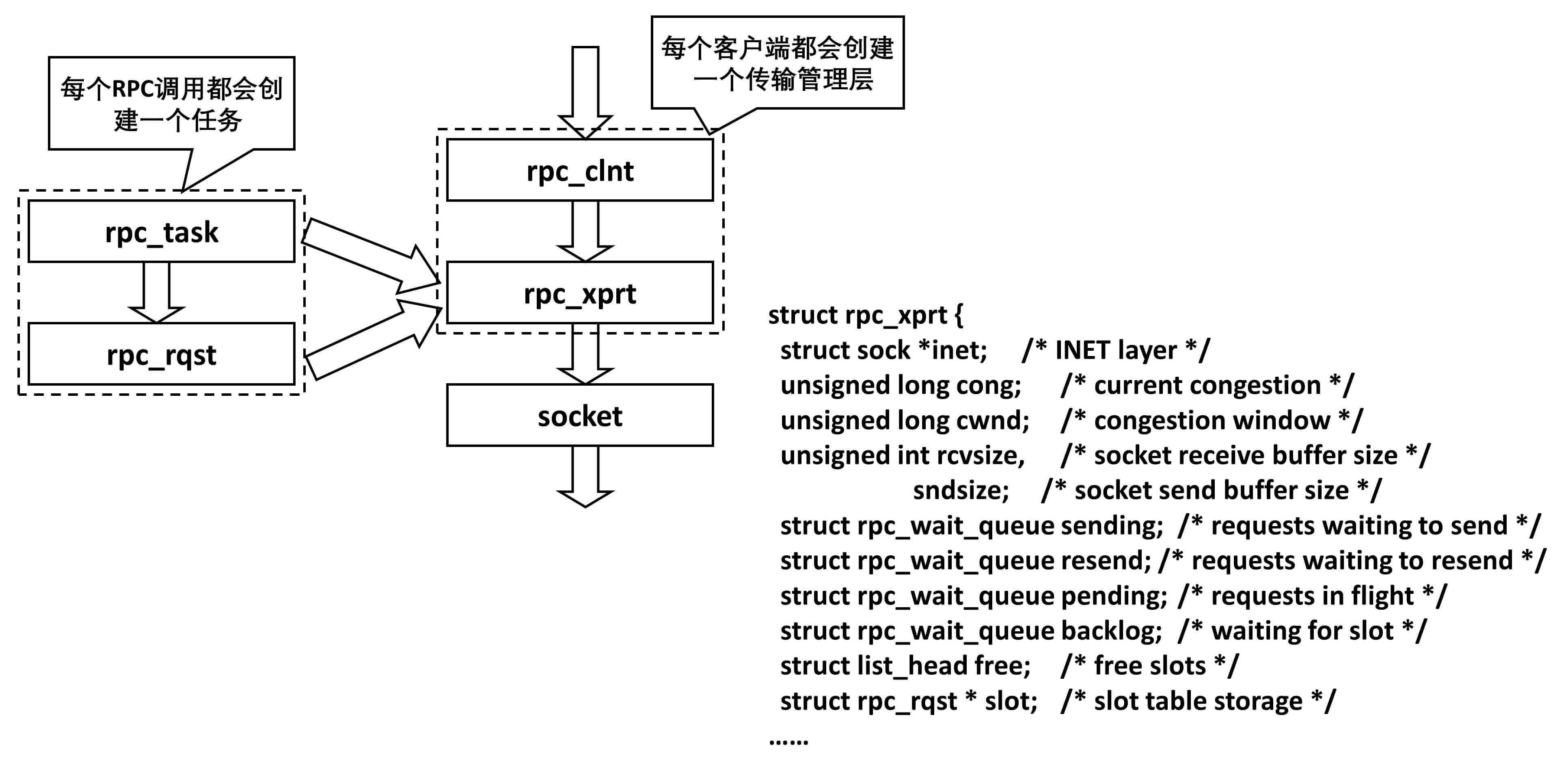 - 在这篇文章中,mount的过程是通过系统调用,最终调用到RPC层。一旦mount完毕之后,客户端就像写入本地文件一样写入NFS了,这个过程是如何触发RPC层的呢?