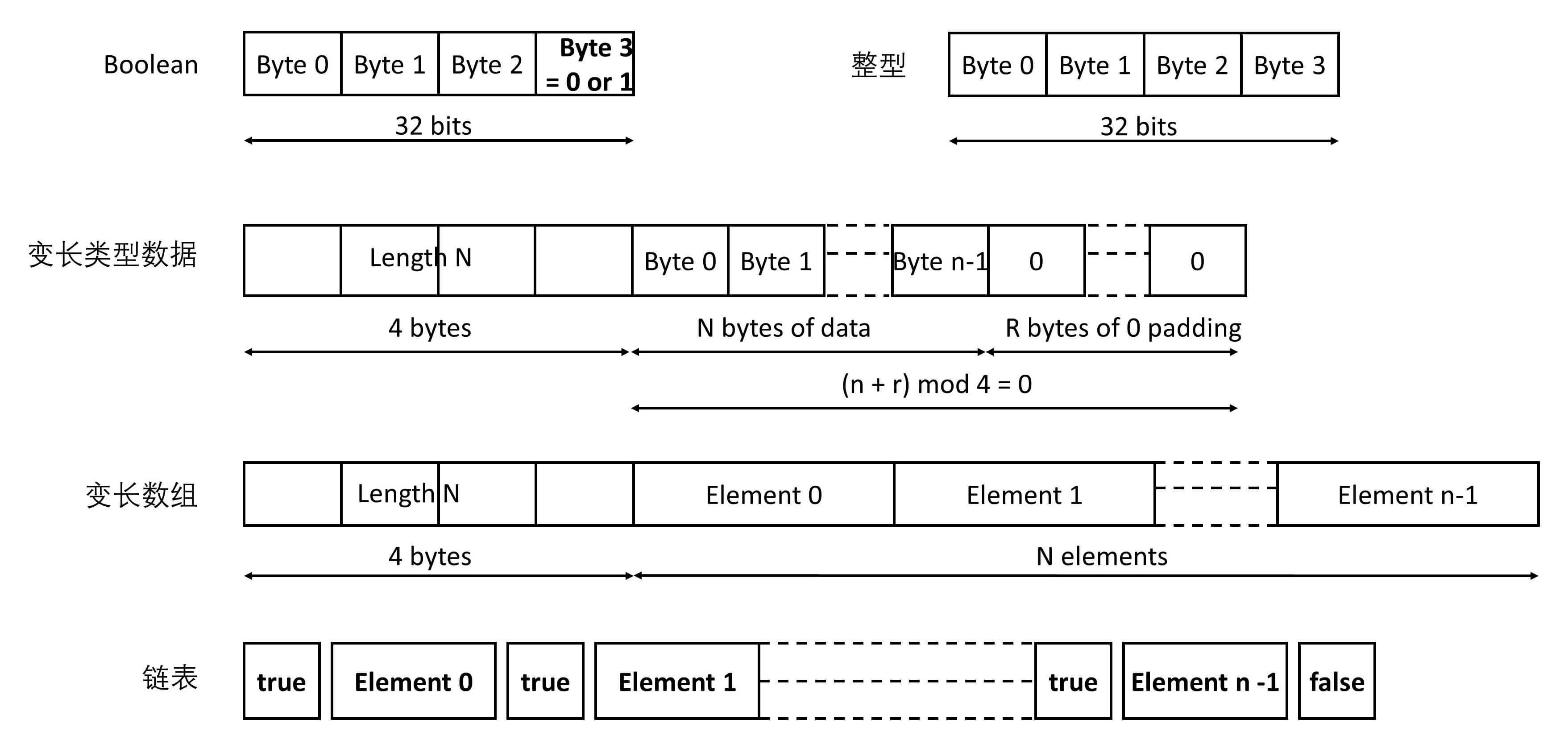 在RPC的调用过程中,所有的数据类型都要封装成类似的格式。而且RPC的调用和结果返回,也有严格的格式。