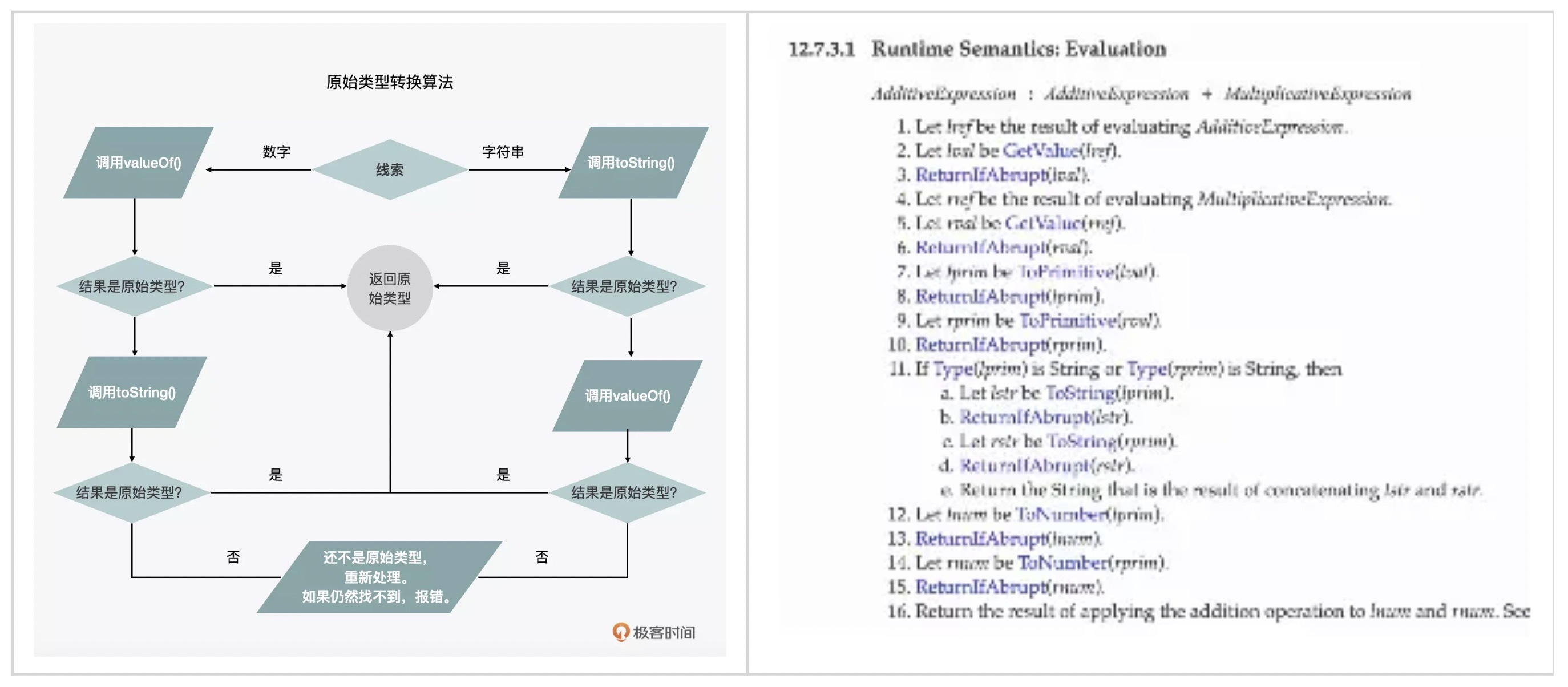 原始类型是我们经常用到的数据类型,这里有基础的类型,比如数字、字符串和布尔,也有特殊的类型,比如null和undefined。相比对象类型,原始类型数据从值的角度来看是理论和实际偏差最大的部分,另外因为它看上去比较简单,所以也同时是很容易被忽略的部分。