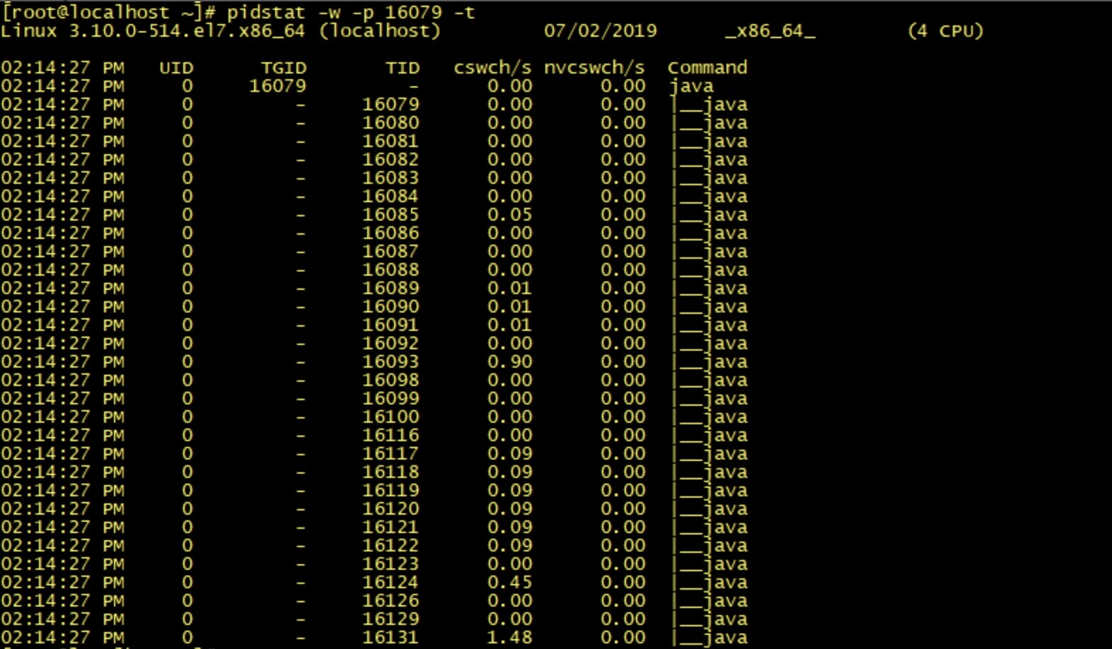 我们通过上述的vmstat命令只能观察到哪个进程的上下文切换出现了异常,那如果是要查看哪个线程的上下文出现了异常呢?