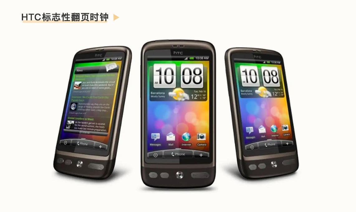 在HTC推出了第一款G1手机之后,就发现了大量安卓的问题。因此,在随后的手机中,就推出了定制的Sence UI,那个标志性的翻页时钟,直到现在也依然是多少人无法忘却的经典,加上很多丰富的交互体验细节以及控件,这些也是当年很多用户买HTC的核心原因。