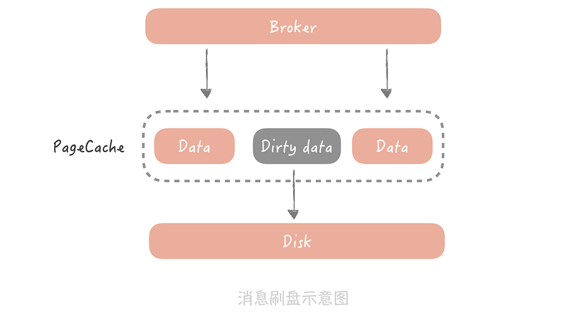拿Kafka举例,消息在Kafka中是存储在本地磁盘上的,而为了减少消息存储时对磁盘的随机I/O,我们一般会将消息先写入到操作系统的Page Cache中,然后再找合适的时机刷新到磁盘上。