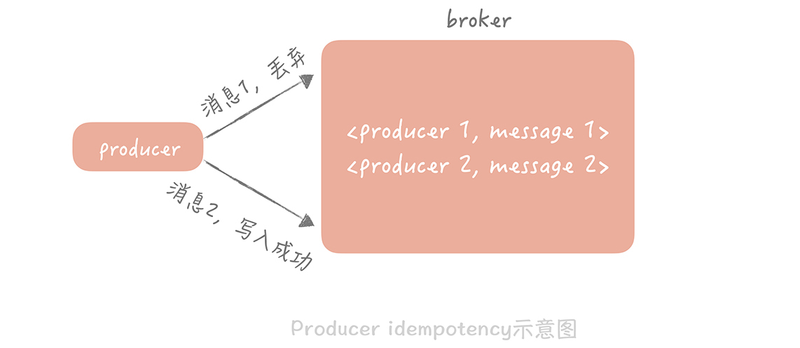 它的做法是给每一个生产者一个唯一的ID,并且为生产的每一条消息赋予一个唯一ID,消息队列的服务端会存储<生产者ID,最后一条消息ID>的映射。当某一个生产者产生新的消息时,消息队列服务端会比对消息ID是否与存储的最后一条ID一致,如果一致就认为是重复的消息,服务端会自动丢弃。
