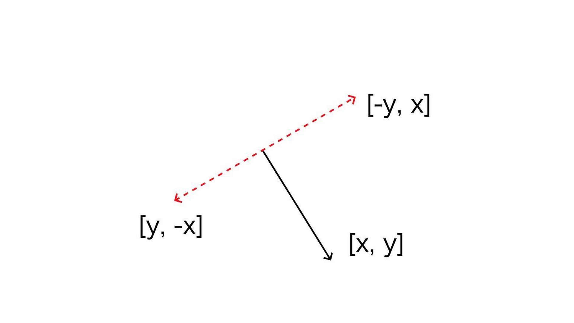 首先,是折线的端点。假设线段的向量为(x, y),因为它移动方向和线段方向垂直,所以我们只要沿法线方向移动它就可以了。根据垂直向量的点积为0,我们很容易得出顶点的两个移动方向为(-y, x)和(y, -x)。如下图所示:
