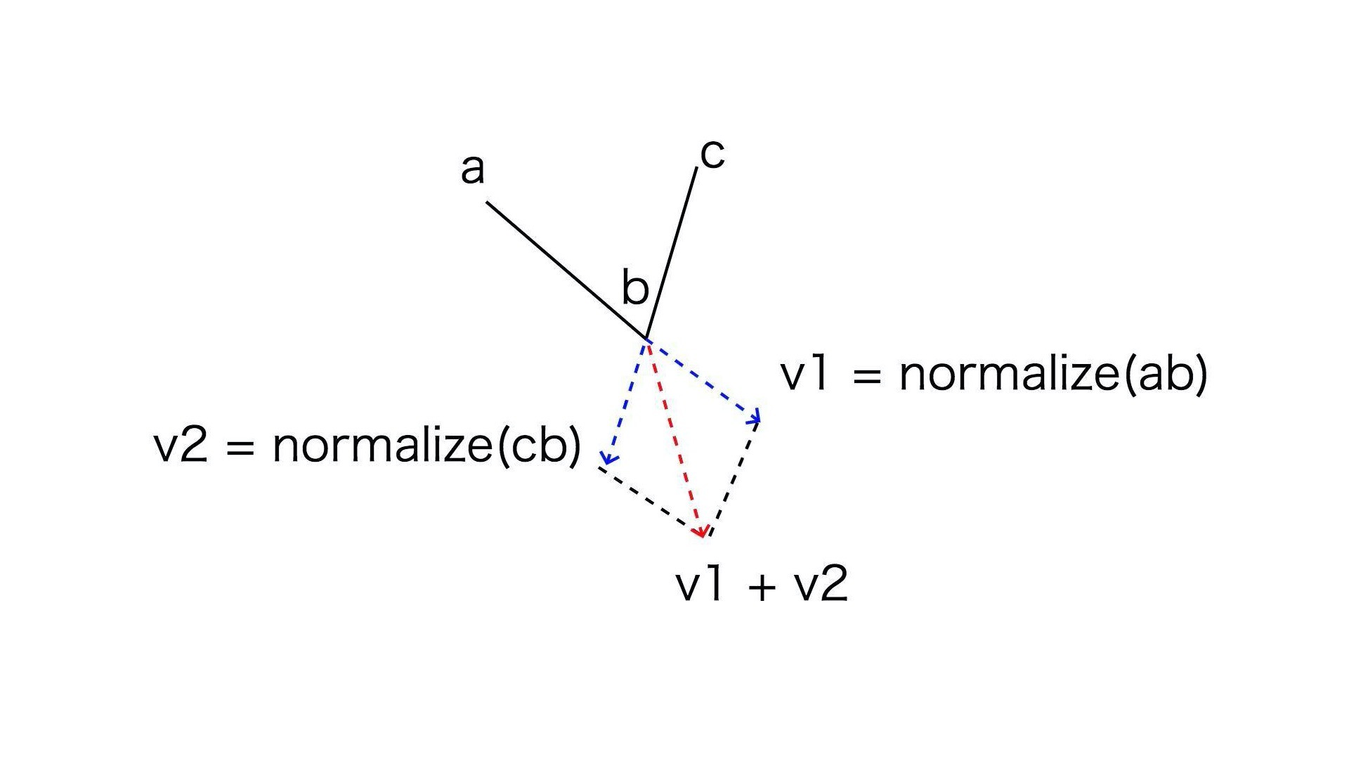 如上图,我们假设有折线abc,b是转角。我们延长ab,就能得到一个单位向量v1,反向延长bc,可以得到另一个单位向量v2,那么挤压方向就是向量v1+v2的方向,以及相反的-(v1+v2)的方向。
