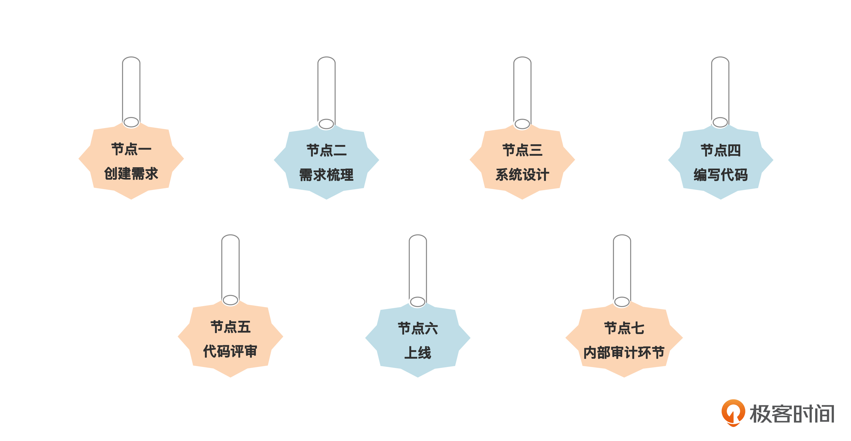 如果已经有了,则要设法把 DDD 融入到现有流程,具体做法就是规定在流程的哪些节点、引入哪些 DDD 活动、由什么人执行、产生哪些交付物。我为你梳理了几个常见的节点。