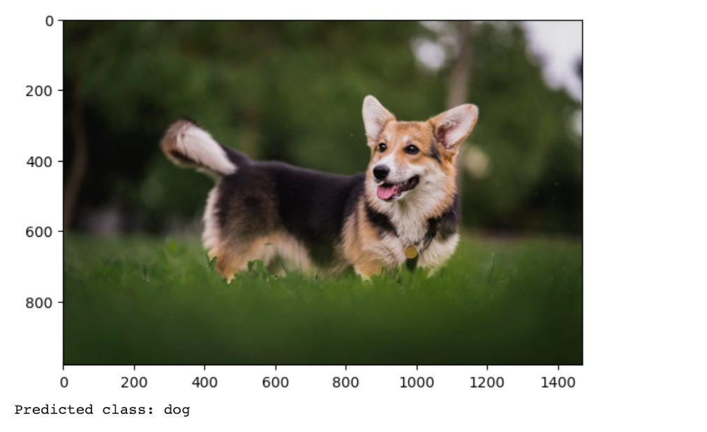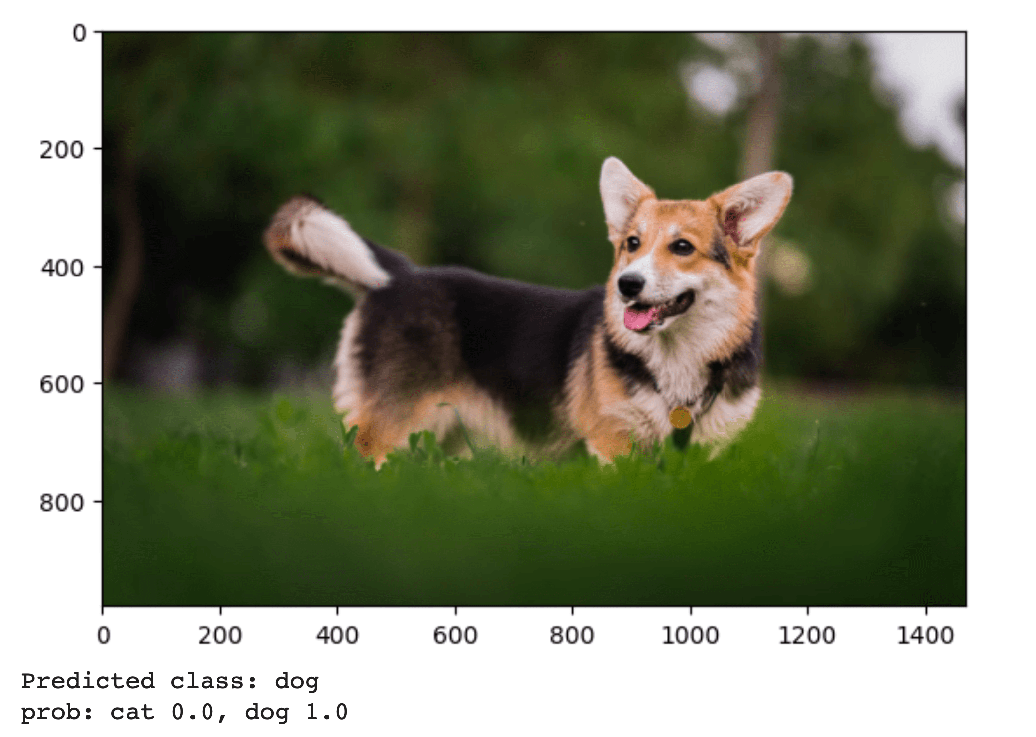 运行之后,得到的结果也是后面这张图。可以看到,分类成表格和猫的置信度为0,而分类成狗的概率为1。