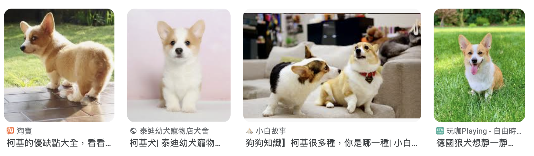 这些数据不需要人工标注,比如我们在任意搜索引擎搜索图像,这些图像都会自带文本描述。下面的图中我展示了在搜索引擎中搜索柯基犬的结果截图。可以看到,图像自带的文本描述与图像具有较强的语义一致性,说白了就是图文对应。这种关联信息就是用于训练的监督信号!