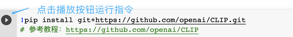 接着在新建好的笔记本页面,输入后面的指令安装OpenAI的CLIP工具包。