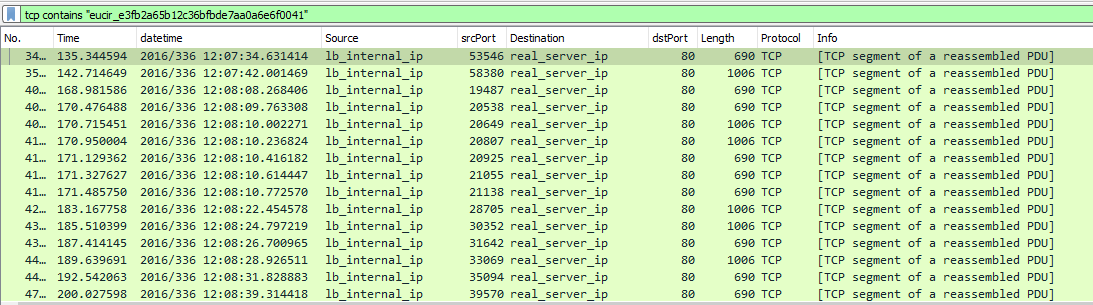 这样就能过滤出相关的服务侧的数据包,而这些报文就是对应了客户侧的同一个请求: