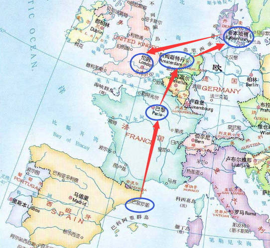 他们最近推出了一个旅游产品,可以让用户自主选择在欧洲旅行的多个城市之间,以自定义的顺序展开旅行。比如,你可以选择从西班牙的巴塞罗那启程,然后来到法国巴黎,随后踏上风车王国荷兰的领土,最后把日不落帝国的伦敦作为最后一站来结束旅行。以上旅程是由4个国家(城市)组成的: