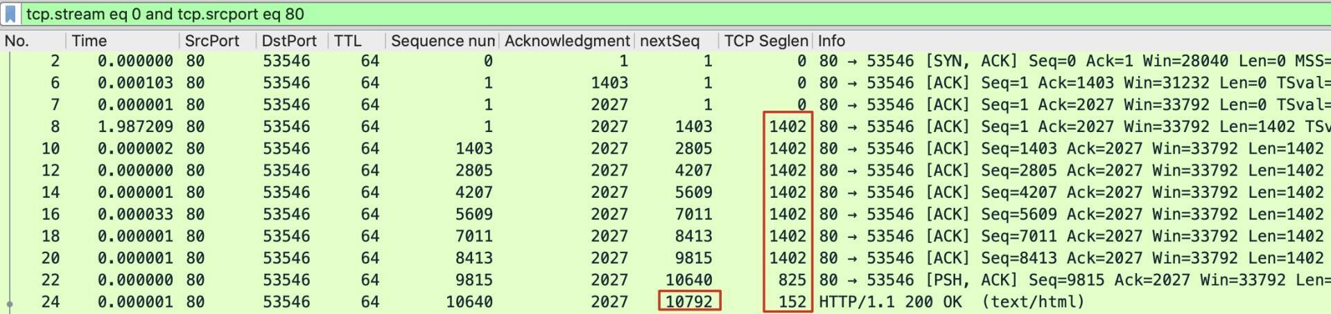 1 | tcp.stream eq 0 and tcp.srcport eq 80 |