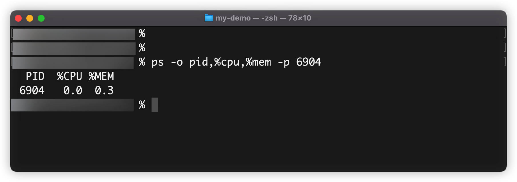 1 | ps -o pid,%cpu,%mem -p ${pid} |