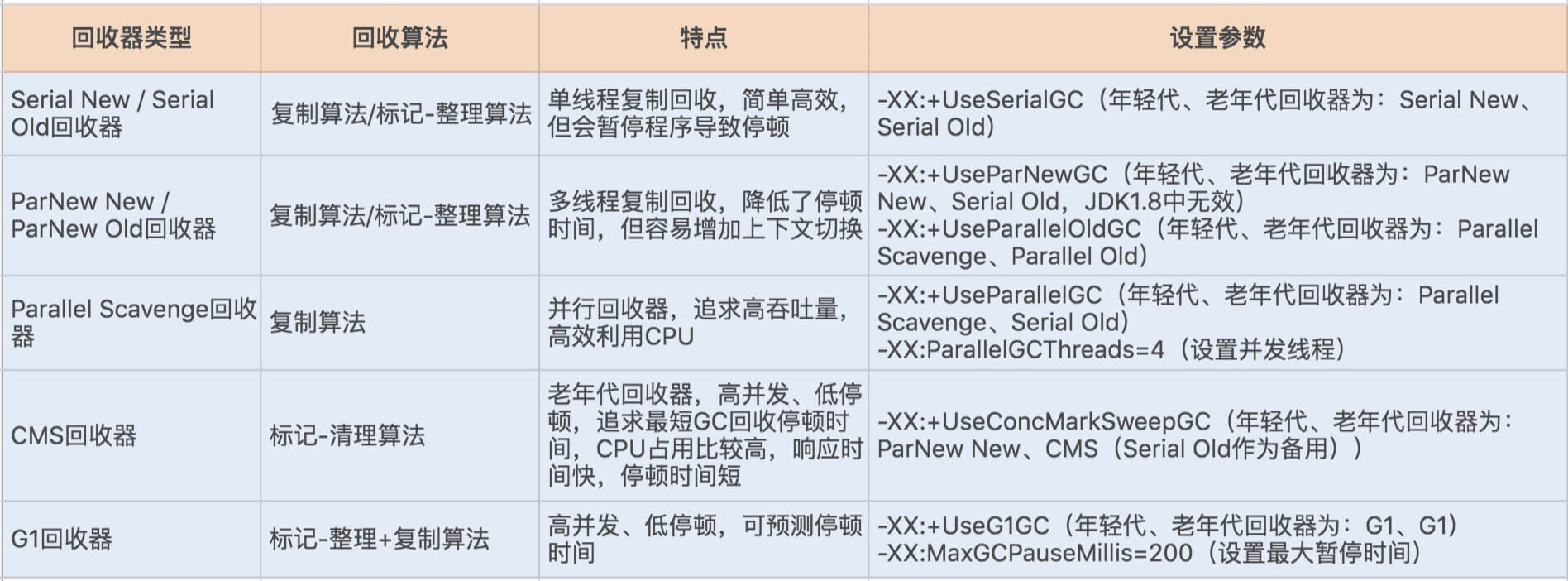 JVM提供了不同的回收算法来实现这一套回收机制,通常垃圾收集器的回收算法可以分为以下几种: