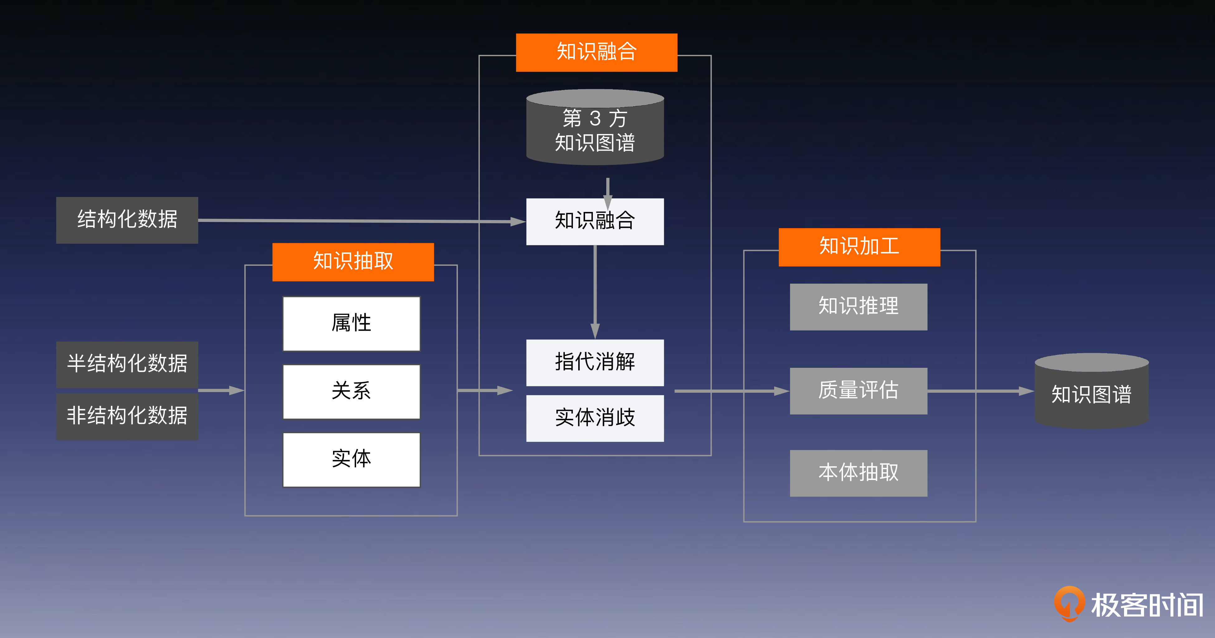 今天我们重点关注构建知识图谱的三个主要步骤:知识抽取、知识融合和知识加工。因为这三个步骤是知识图谱技术的核心特征,值得我们多花时间先搞清楚。