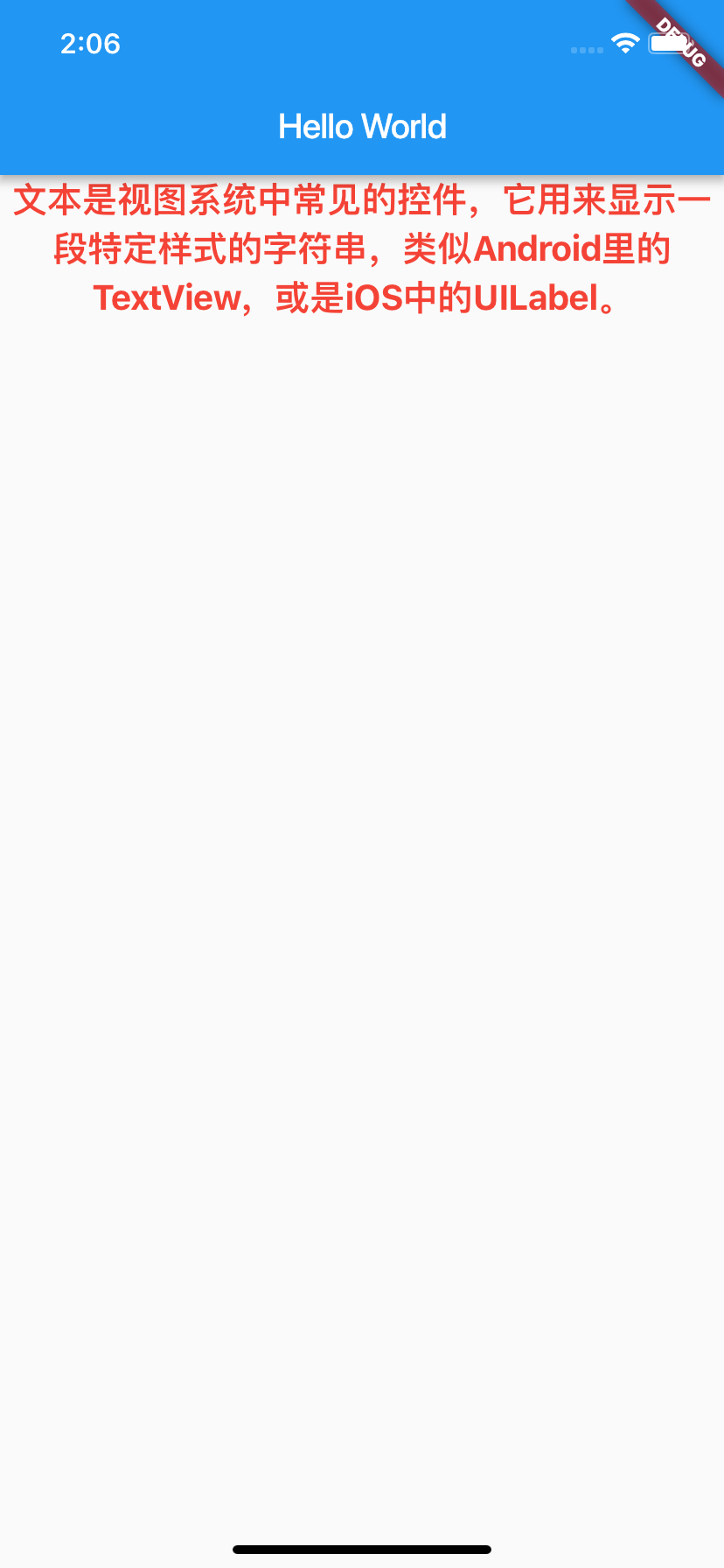 我们先来看看如何使用单一样式的文本Text。