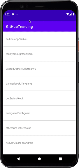 1 2 3 4 5 6 7 8 9 class MainRepository( private val dataSource: RepoDataSource = RemoteRepoDataSource, private val localDataSource: RepoDataSource? = null ) : IRepository { override suspend fun getRepoList(): ResultX<RepoList> { // 暂不处理缓存逻辑 return dataSource.getRepos() } }