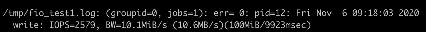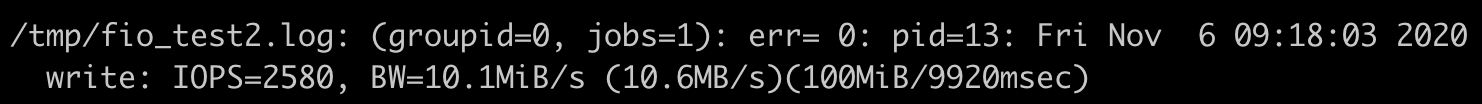 我们还是看看fio运行输出的结果,这时候,fio_test1和fio_test2两个容器里执行的结果都是10MB/s了。