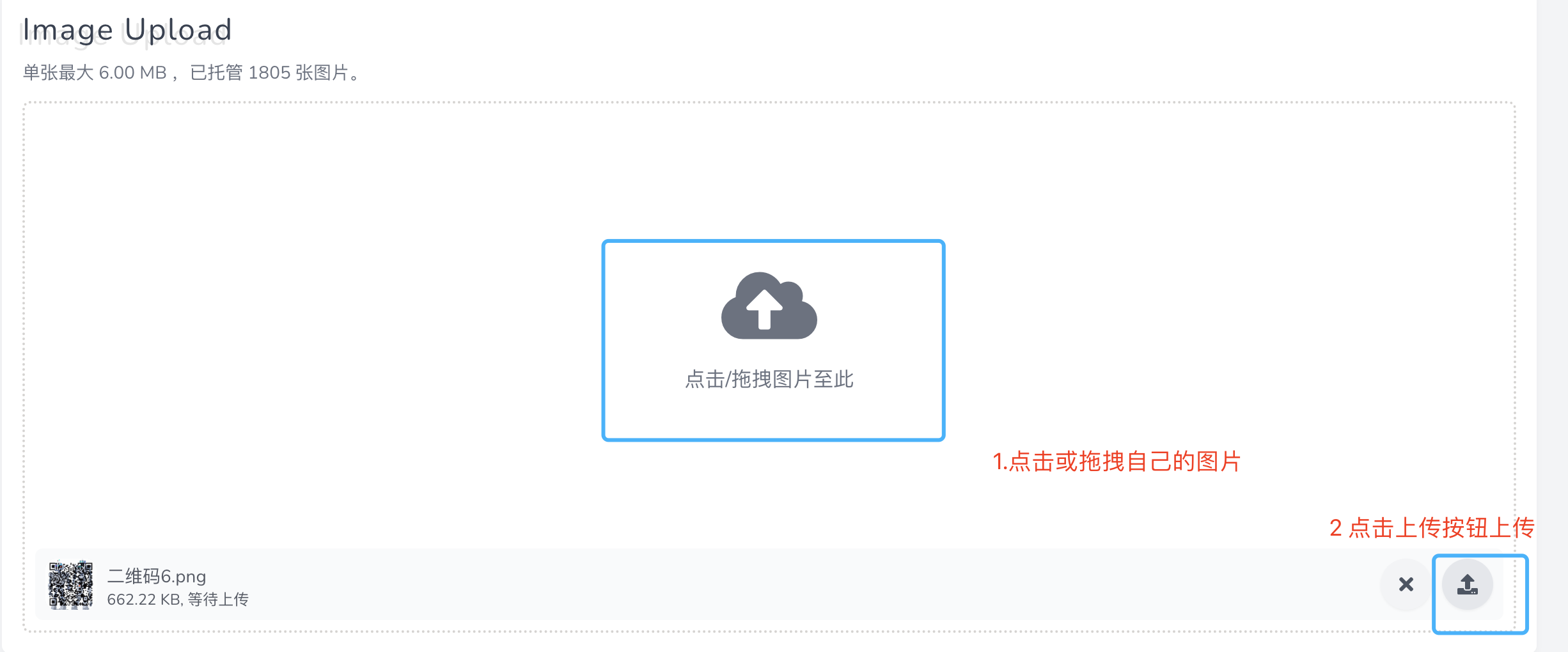如果你想上传自己手里的原始二维码,可以进入这个链接,参考后面的示意图上传二维码图片,然后复制url链接,替换到后面截图位置的代码里。