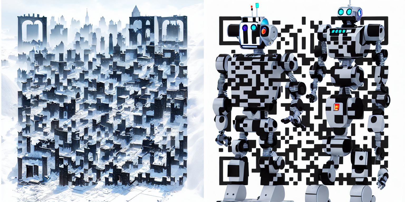 Civitai社区中的 QR Code Monster 模型可以用于生成创意二维码。具体来说,我们使用Canny或者HED等边缘检测算法提取原始二维码的边缘,用作ControlNet的控制条件,然后写一个prompt进行创意二维码的生成。