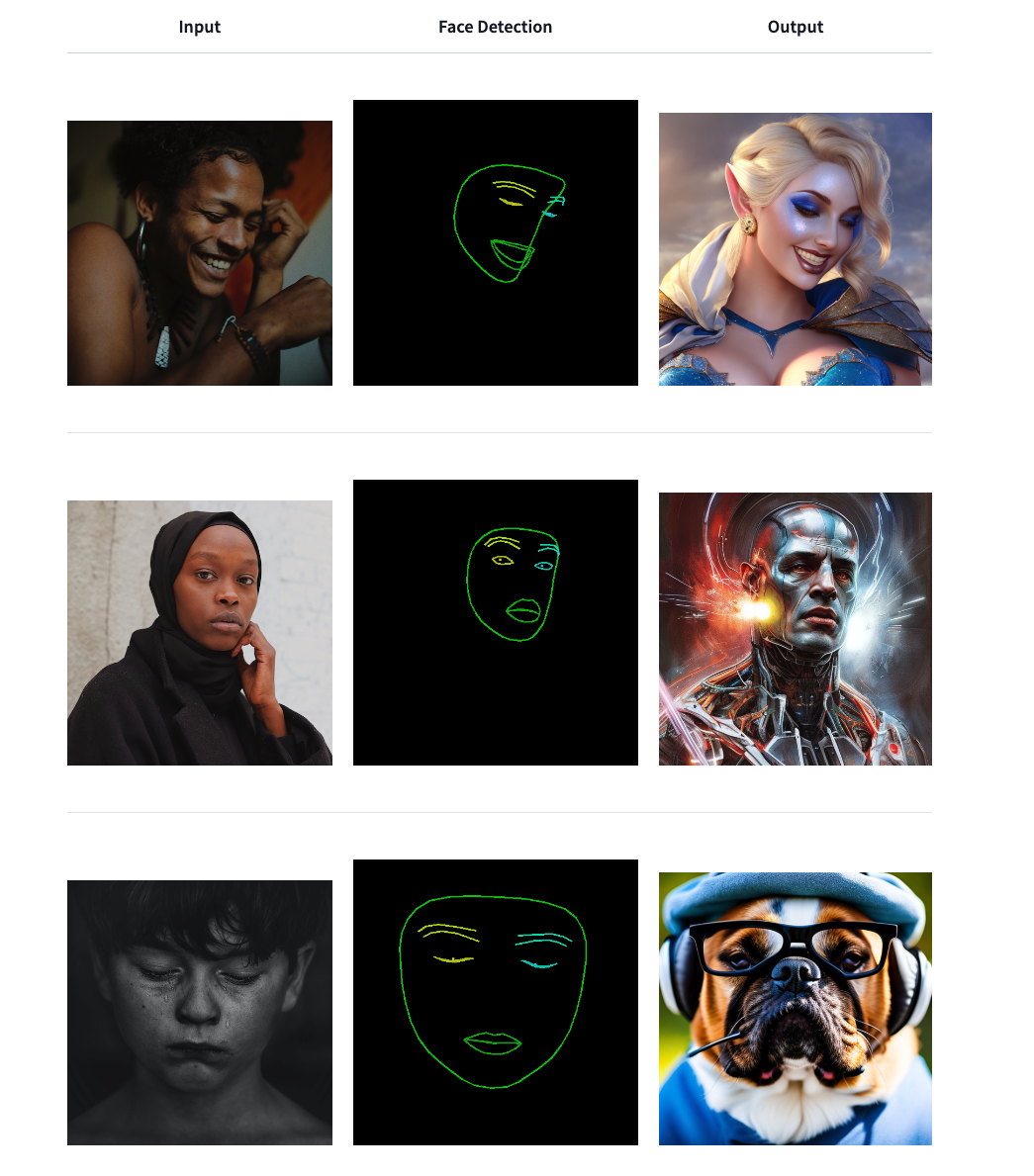 另一个要推荐的ControlNet模型专门用于控制表情生成。通过提取人脸的关键点信息,并把这些信息用作控制条件,配合prompt就可以生成各种有意思的效果。