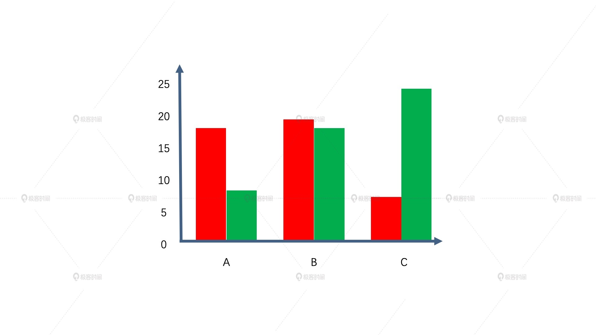 当然,我们实际进行数据对比的时候,并不会严格要求两个颜色是差异180度的互补色,而是会采用差异较大的,差值比较接近180度的两种颜色,这样也算是互补色。下面这张图,就使用了红、绿互补色的配色方案。