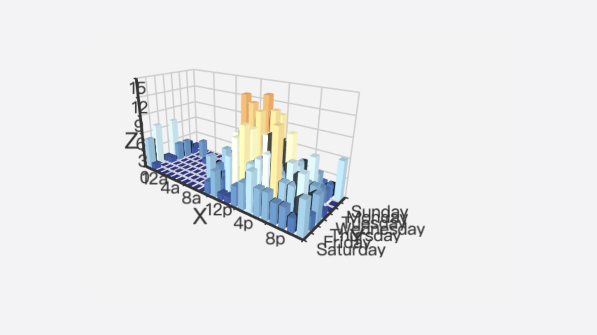在这张图表上,为了强调产品的生产量,我们用立方体的高度和颜色同时表示了这一个维度的变量。