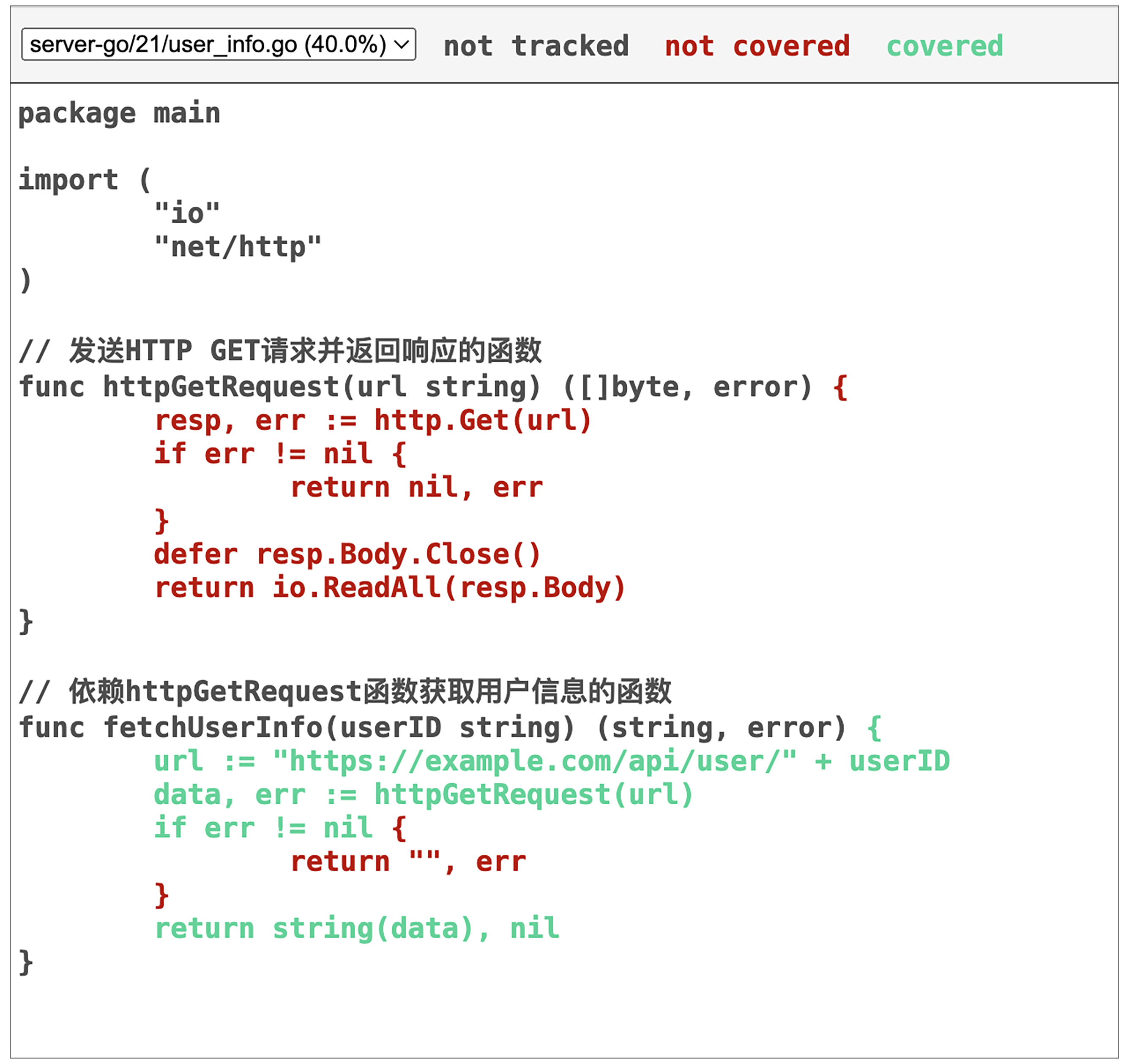 接着,我们可以 go tool cover 来生成 HTML 格式的覆盖率报告。