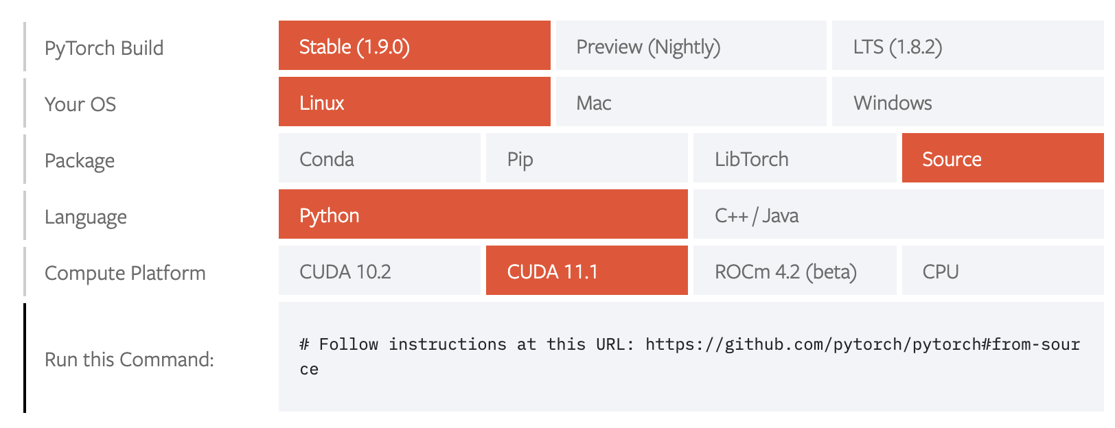 目前 PyTorch 的稳定版本是 1.9.0,后续如果 PyTorch 的版本升级更新了,我们再将命令中的版本号稍作修改就可以了。