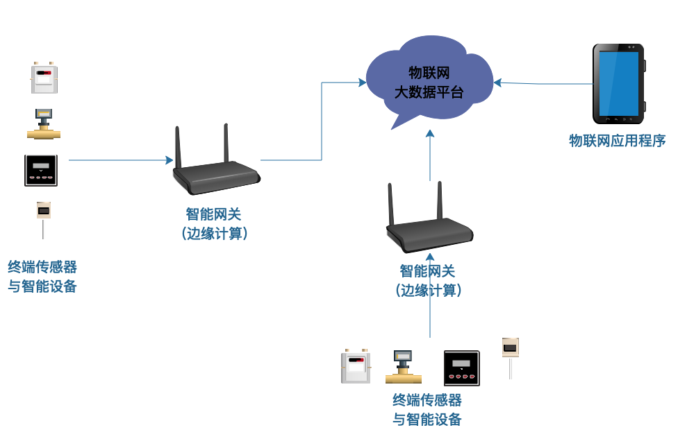由于传感器可能部署在很多相距较远的地方,而且数量庞大,所以不可能将传感器数据直接接入云端服务器,而且也不是所有的传感器数据都需要实时上传云端。所以,需要有一个在传感器现场的前置服务器进行现场管理。智能网关就是距离现场传感器最近的一个计算机。