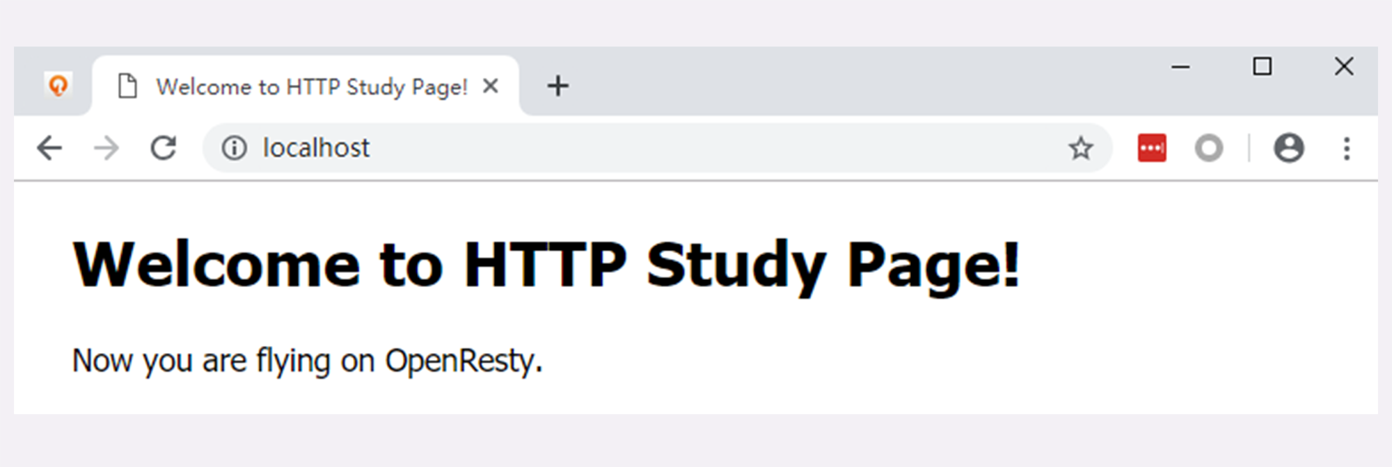 然后我们打开Chrome,在地址栏输入“http://localhost”,访问刚才启动的OpenResty服务器,就会看到一个简单的欢迎界面,如下图所示。