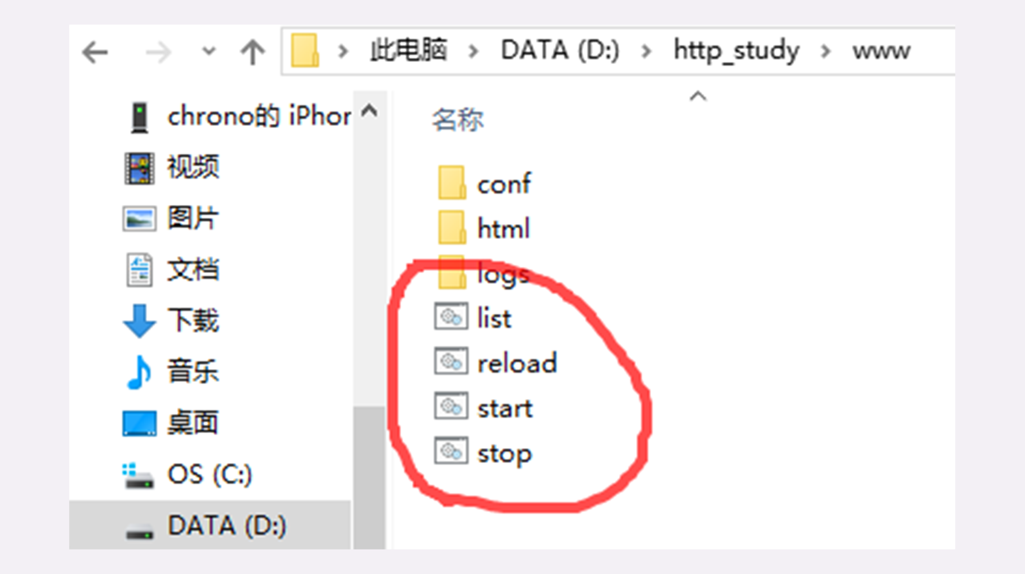 在http_study的“www”目录下有四个批处理文件,分别是: